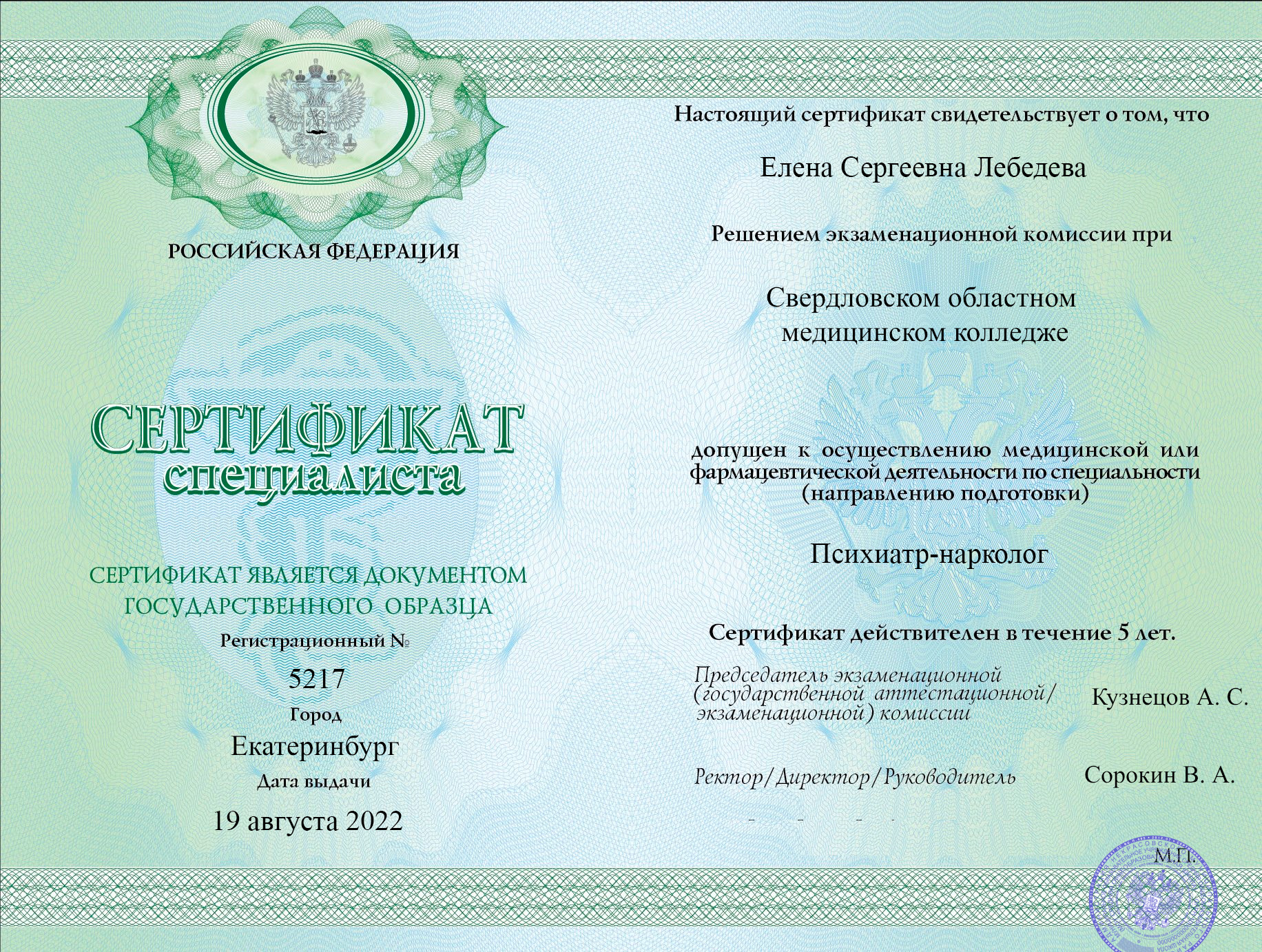 Елена Сергеевна Лебедева врач нарколог клиники доктора Стукаловой в Хотьково